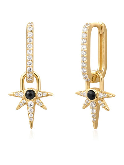 Black Onyx Star Drop Huggies {Gold}