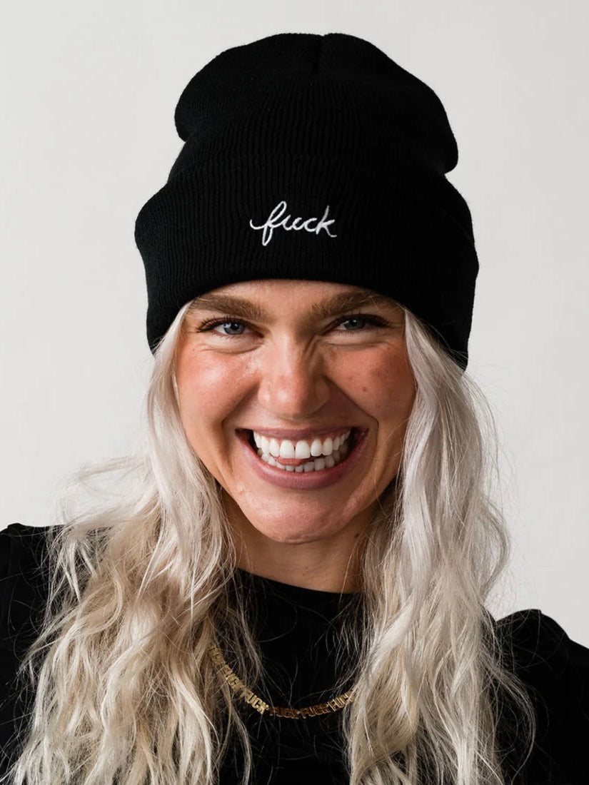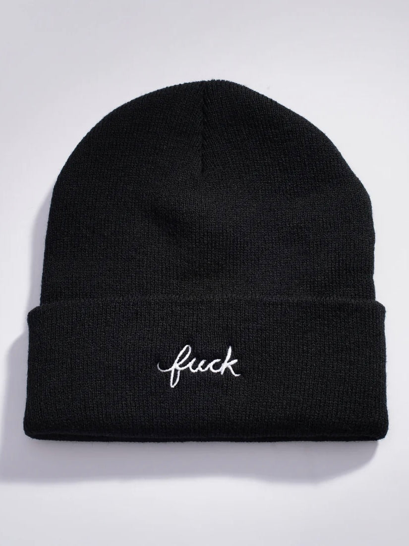Style: Bring your favorite expletive into sweater season with this black cuffed beanie. Designed to fit most, it adds a playful edge to your cold-weather wardrobe.