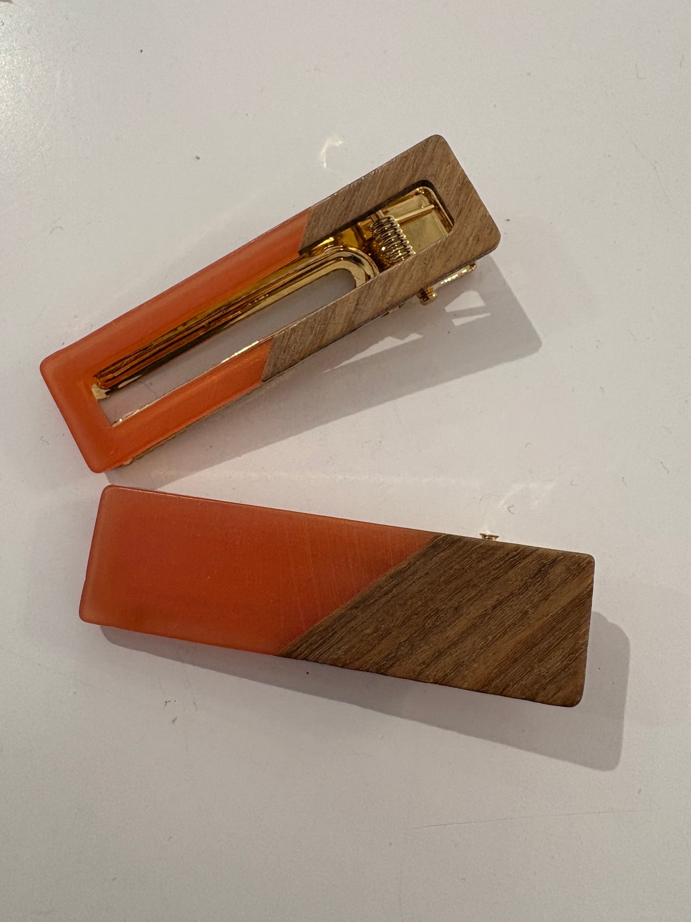 Two Tone Wood Hair Clip Set {Coral}