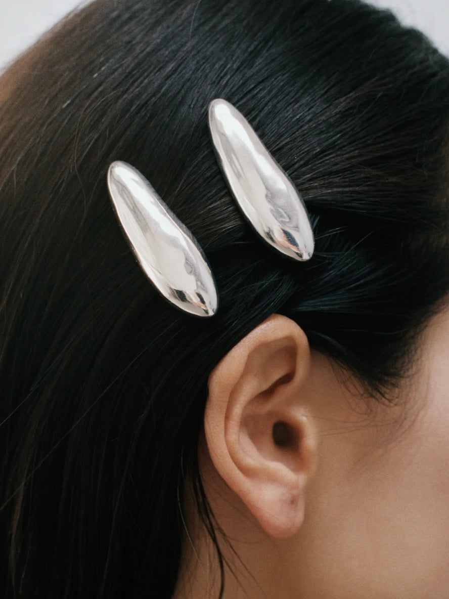 Style: Dazzle with pop of metallic silver. Great for any day or special occasions. Alligator-style clip. 2" length, .5" width. Midweight.