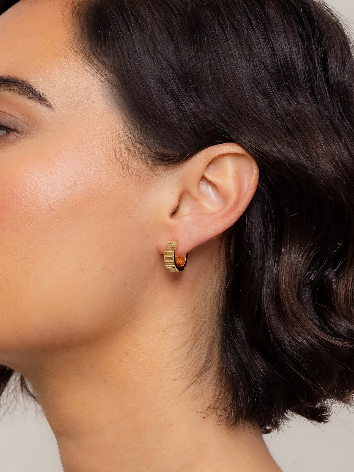 Style: The Debbie Hoops reimagine a classic silhouette with modern edge. Created in collaboration with @k8_smallthings, their bold ridged texture adds dimension and shine, making them the kind of hoops you’ll reach for daily. 15mm diameter, clickback closure.