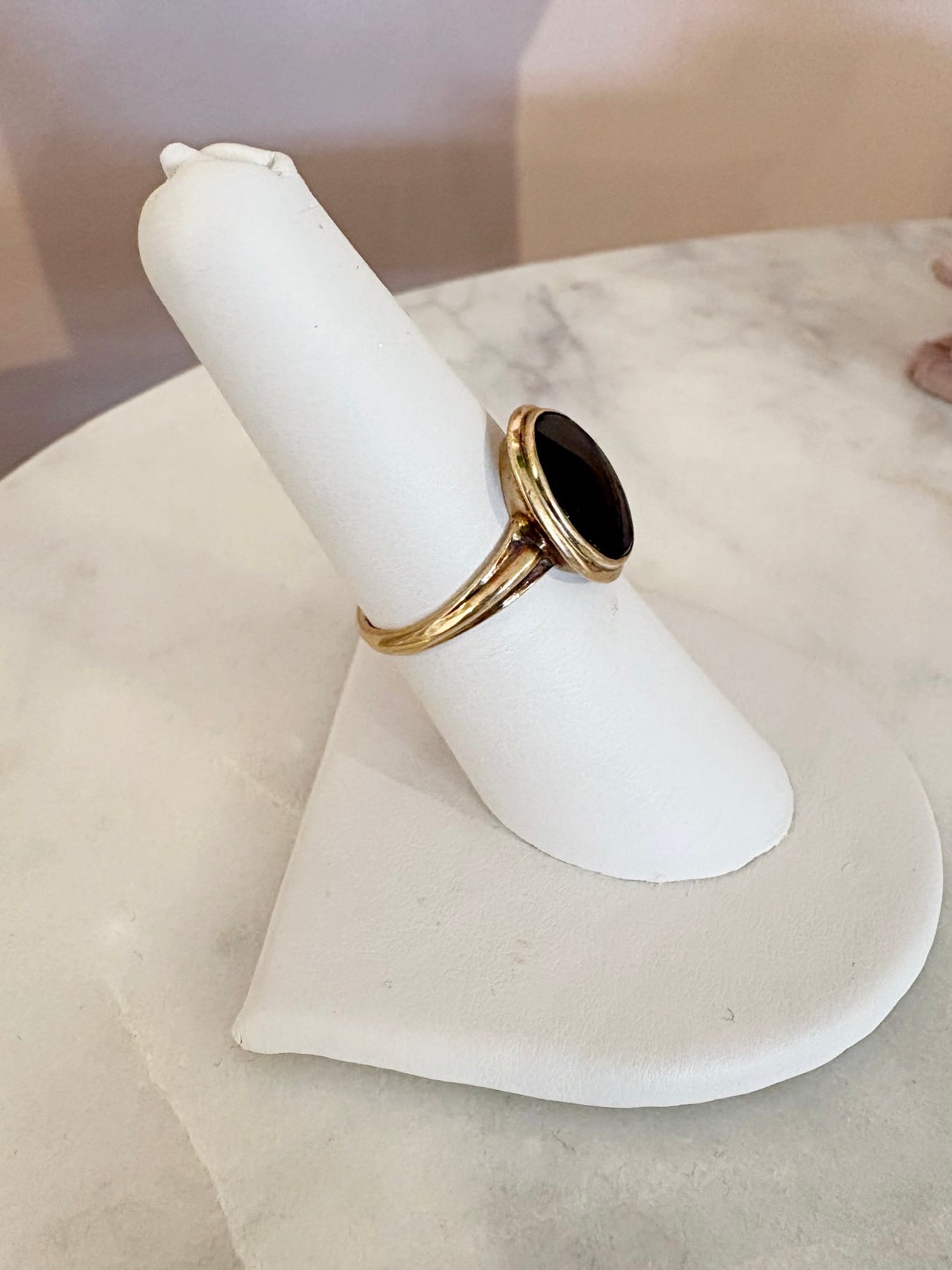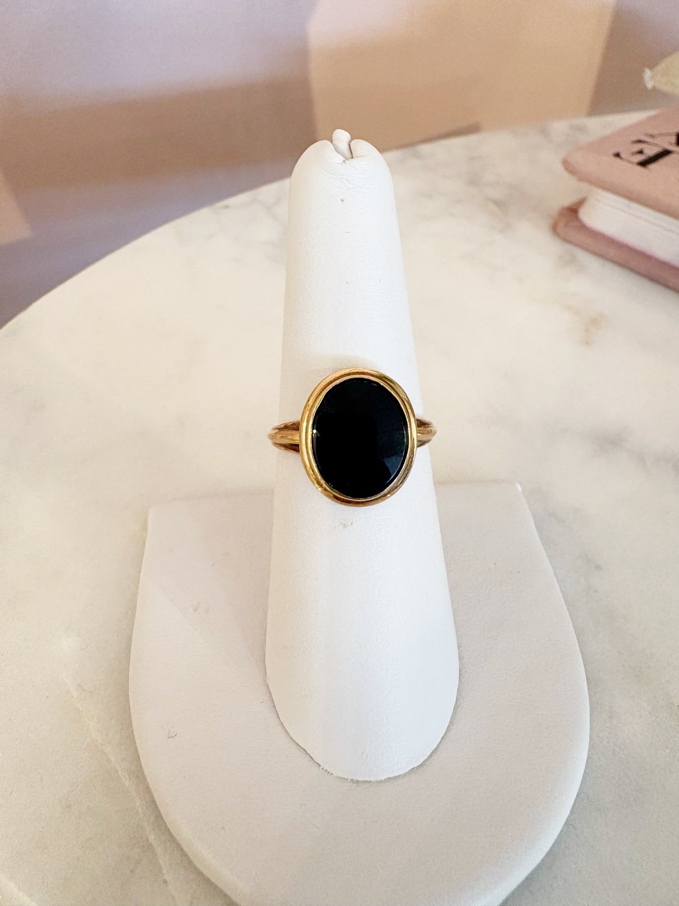 Style: An Estate Onyx ring with a smooth, refined look. This ring is a size 7 and is approx. 12.5 x 14.5mm.