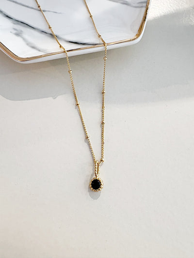 Black Onyx and Mother of Pearl Charm Necklace {Gold}