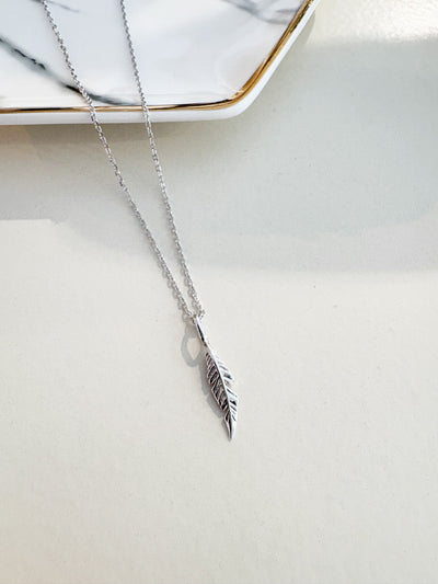 Feather Pendant Necklace {Silver}