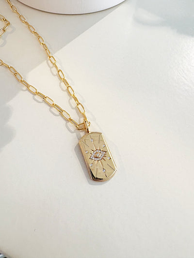 Evil Eye Tag Paperclip Necklace {Gold}