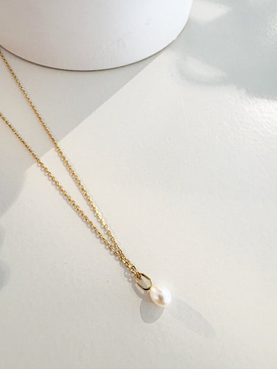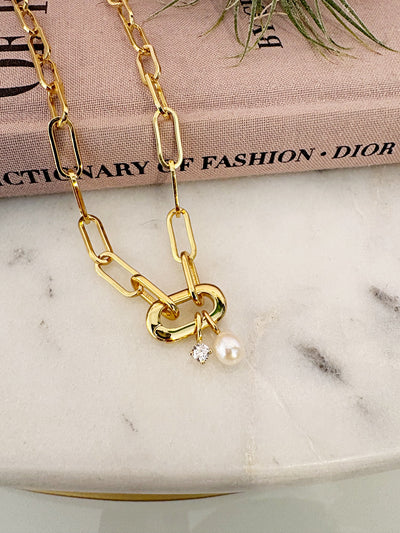 Pearl Mini Link Necklace {Gold}