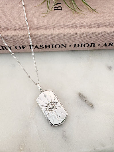 Evil Eye Tag Necklace {Silver}