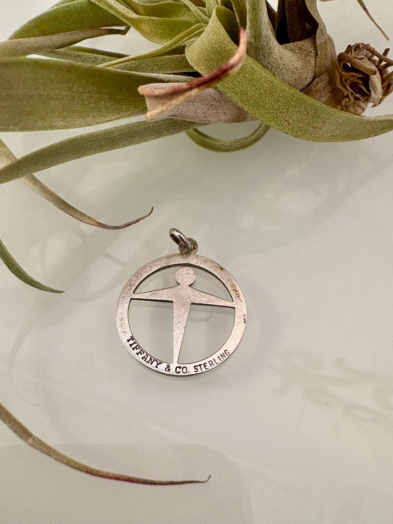 Style: A great vintage find for any Tiffany lover! Sleek, iconic, and effortless stylish -- this authentic Tiffany and Co pendant is crafted in solid sterling silver with a bold open-circle design, the signature "Manpower" symbol. Minimalist with a modern edge, it's perfect for everyday wear or layering with your favorite chains. A timeless designer piece!