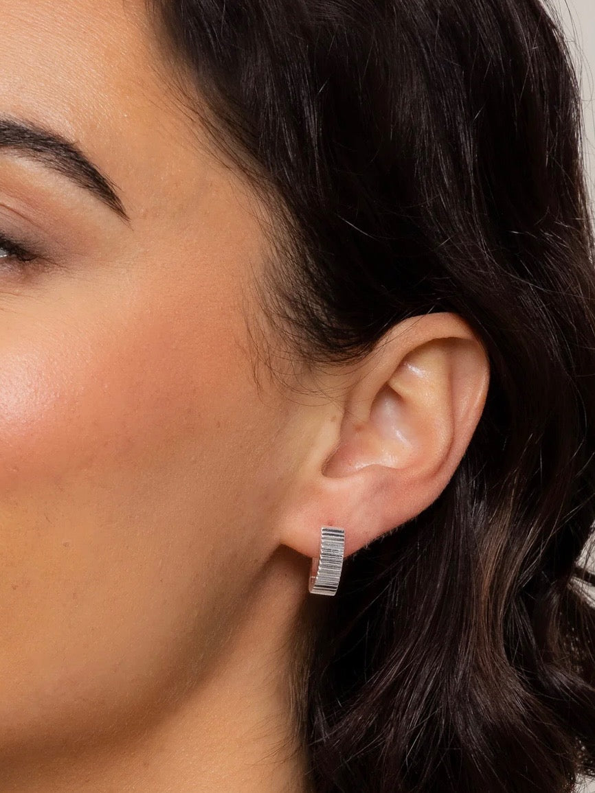 Style: The Debbie Hoops reimagine a classic silhouette with modernedge. Created in collaboration with @k8_smallthings, their bold ridged texture adds dimension and shine, making them the kind of hoops you’llreach for daily.