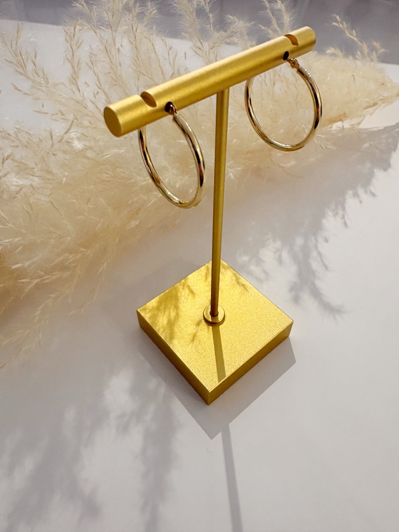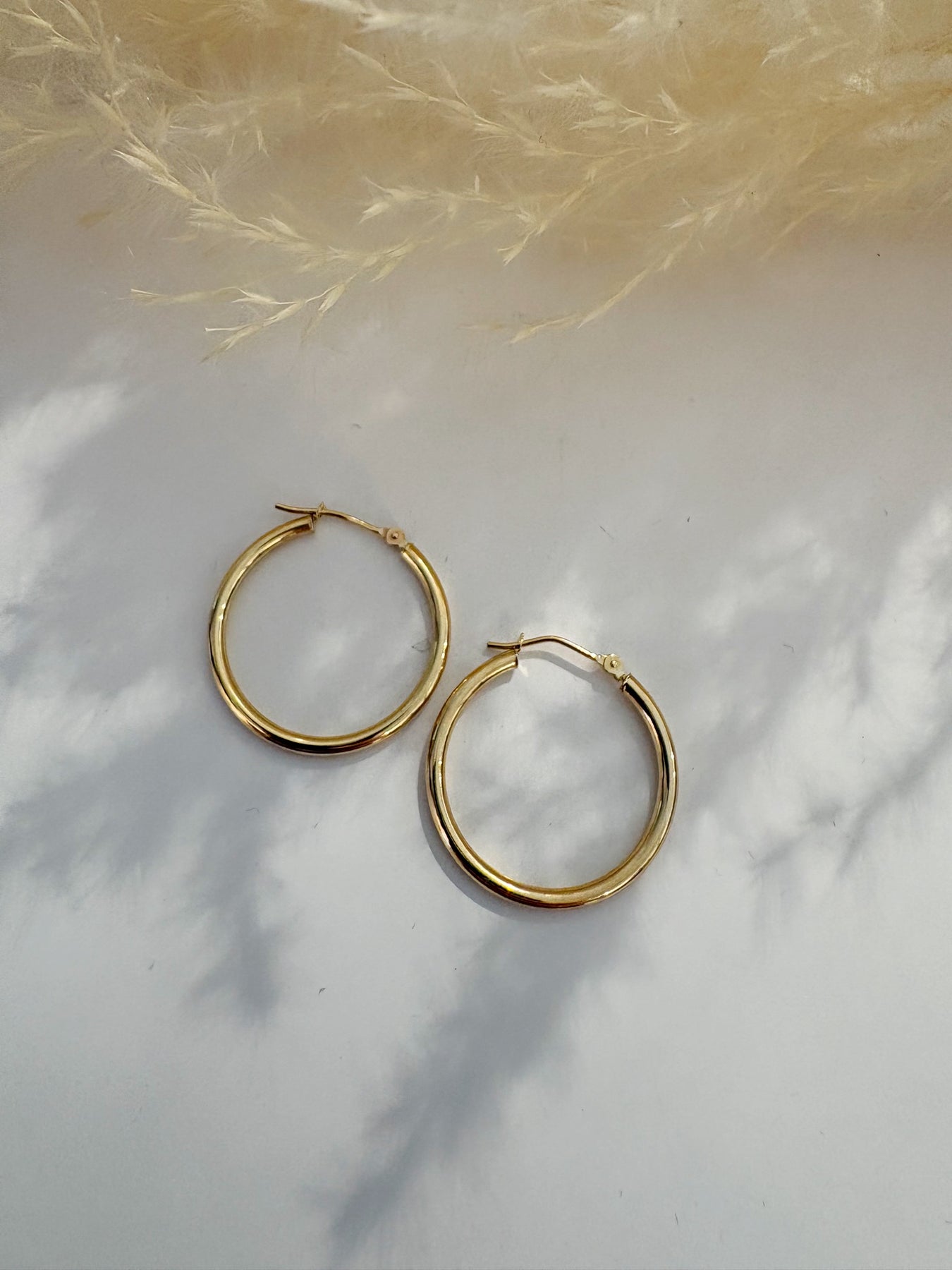 Style: Timeless and easy, these classic tube hoops are the pair you’ll reach for every day. Crafted in a sleek 1" diameter with a slim 2mm tube profile, they give just the right amount of shine without feeling heavy or overdone. The secure saddleback closure keeps them comfortably in place from morning to night.