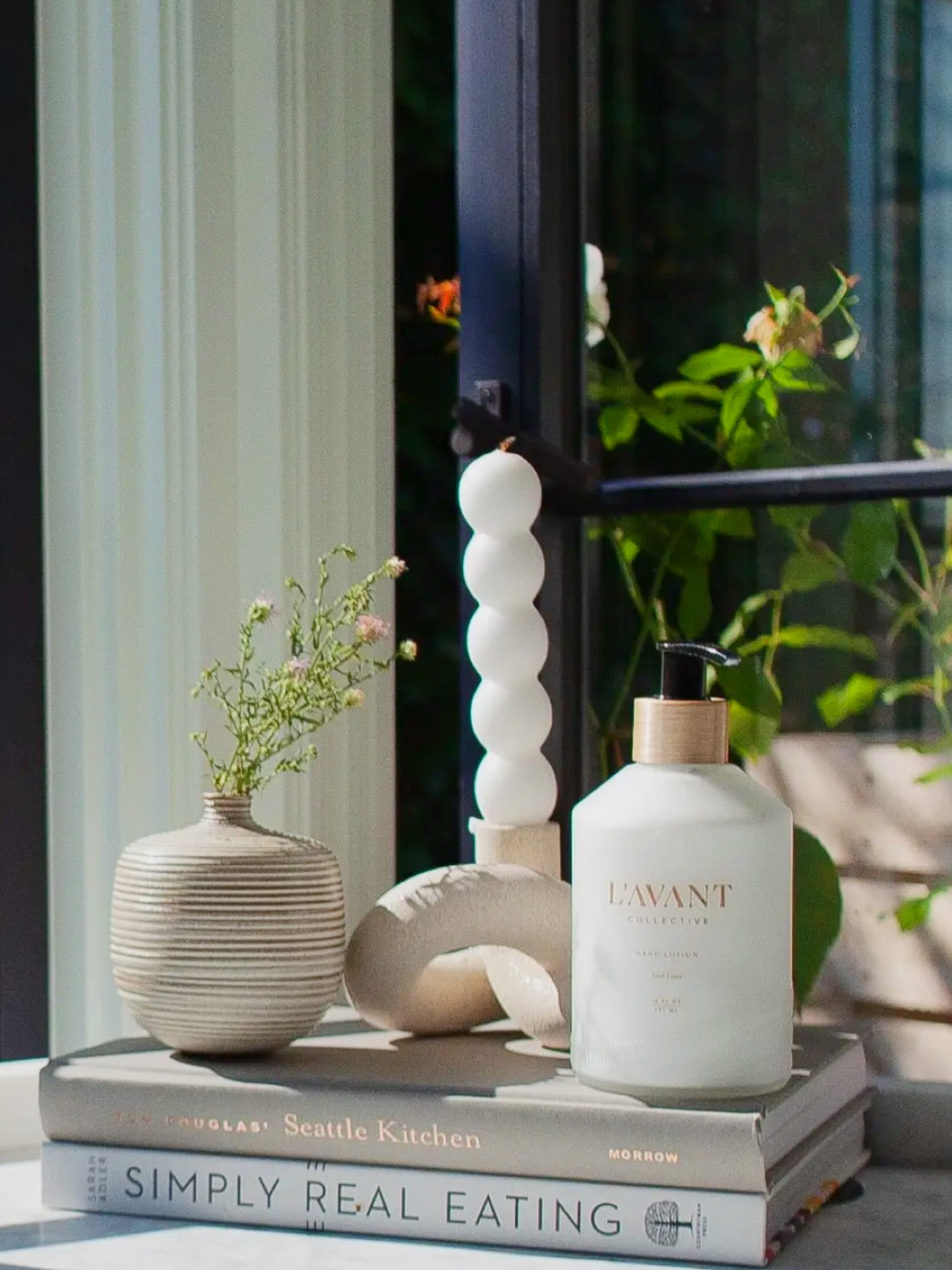 Luxurious and ultra-hydrating, L’AVANT Hand Lotion is equal parts pampering and protection. Lightweight, non-greasy, and delicately scented, our lush moisturizing formula is like a spa treatment for your hands. It's packed with nourishing, revitalizing, plant-based ingredients, within a beautifully crafted glass bottle dispenser.