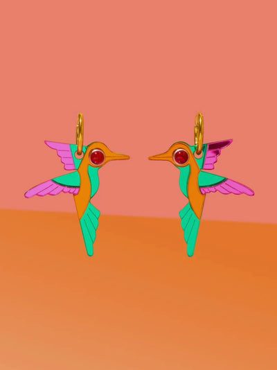 Hummingbird Hoop Earrings {Green/Orange/Pink}