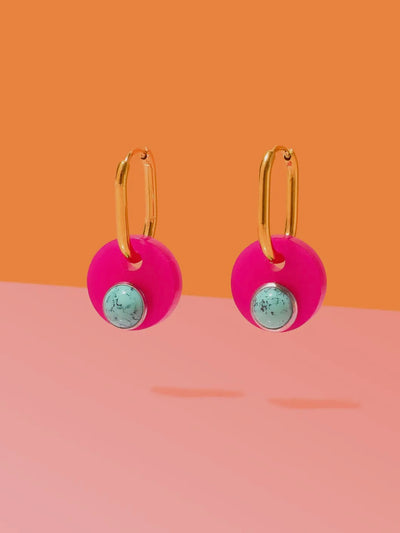 Deco Glam Medallion Oval Hoops {Hot Pink/Turquoise}
