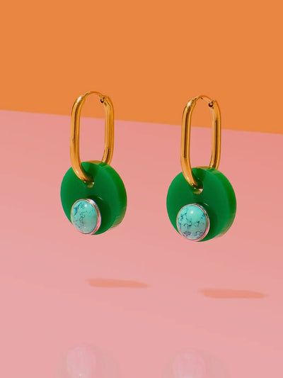 Deco Glam Medallion Oval Hoops {Green/Turquoise}