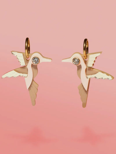 Hummingbird Hoop Earrings {Beige/Gold}