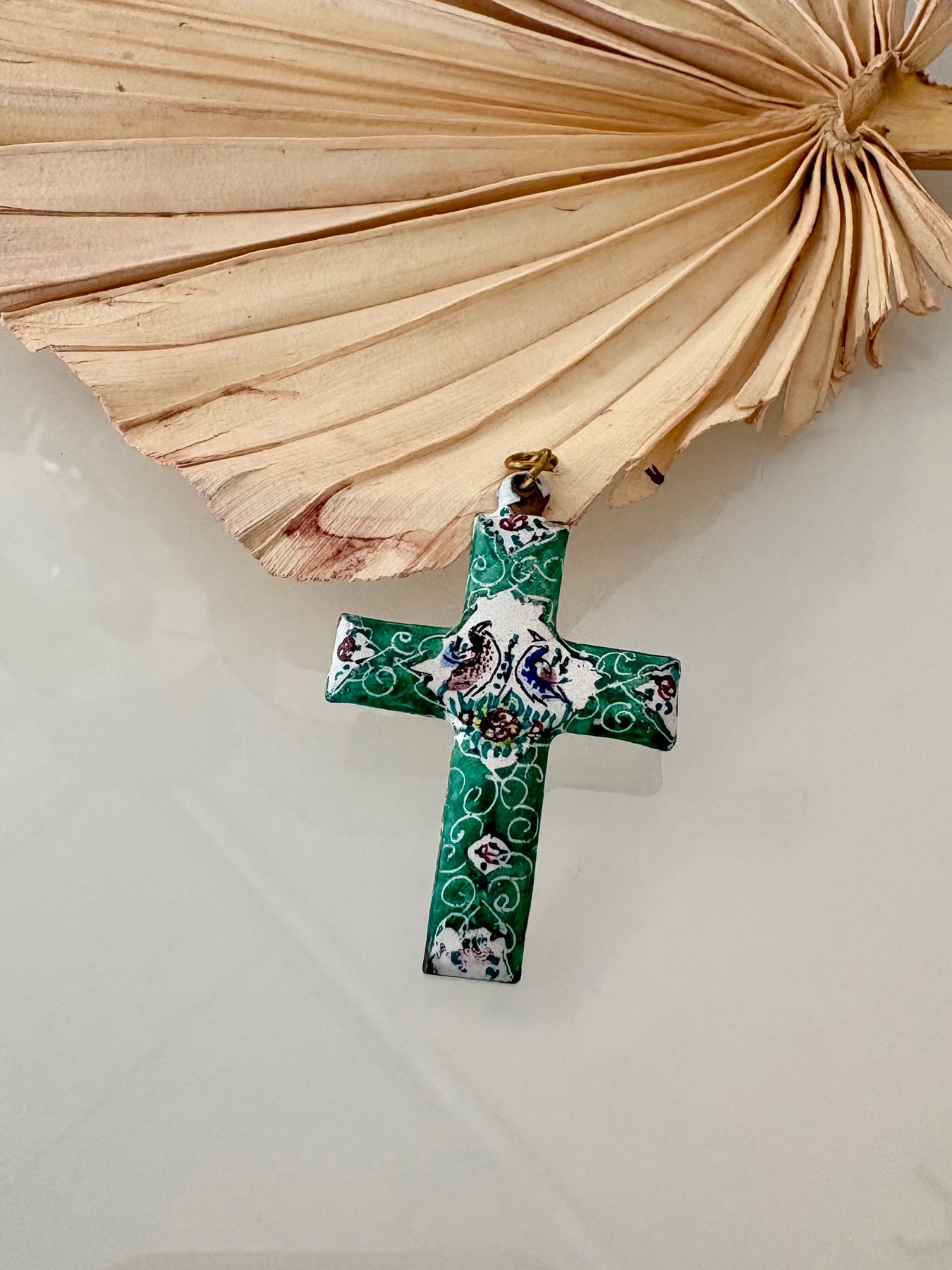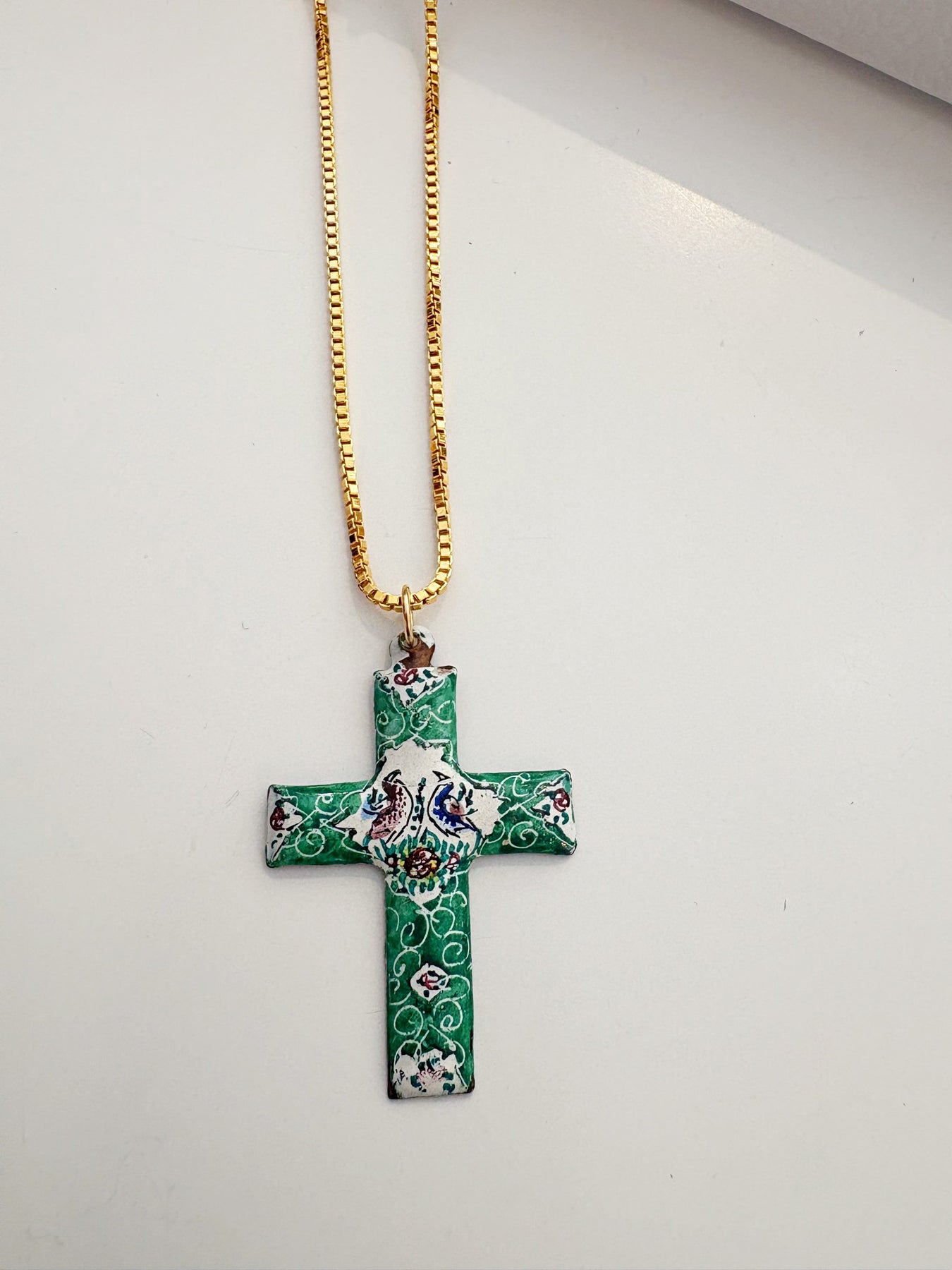 Style: A vintage enamel cross pendant and vintage box chain add some personality to your look. Measures approximately 1.5" x 1". Chain is 18" length, 1.5mm thickness, spring ring closure. Lightweight.