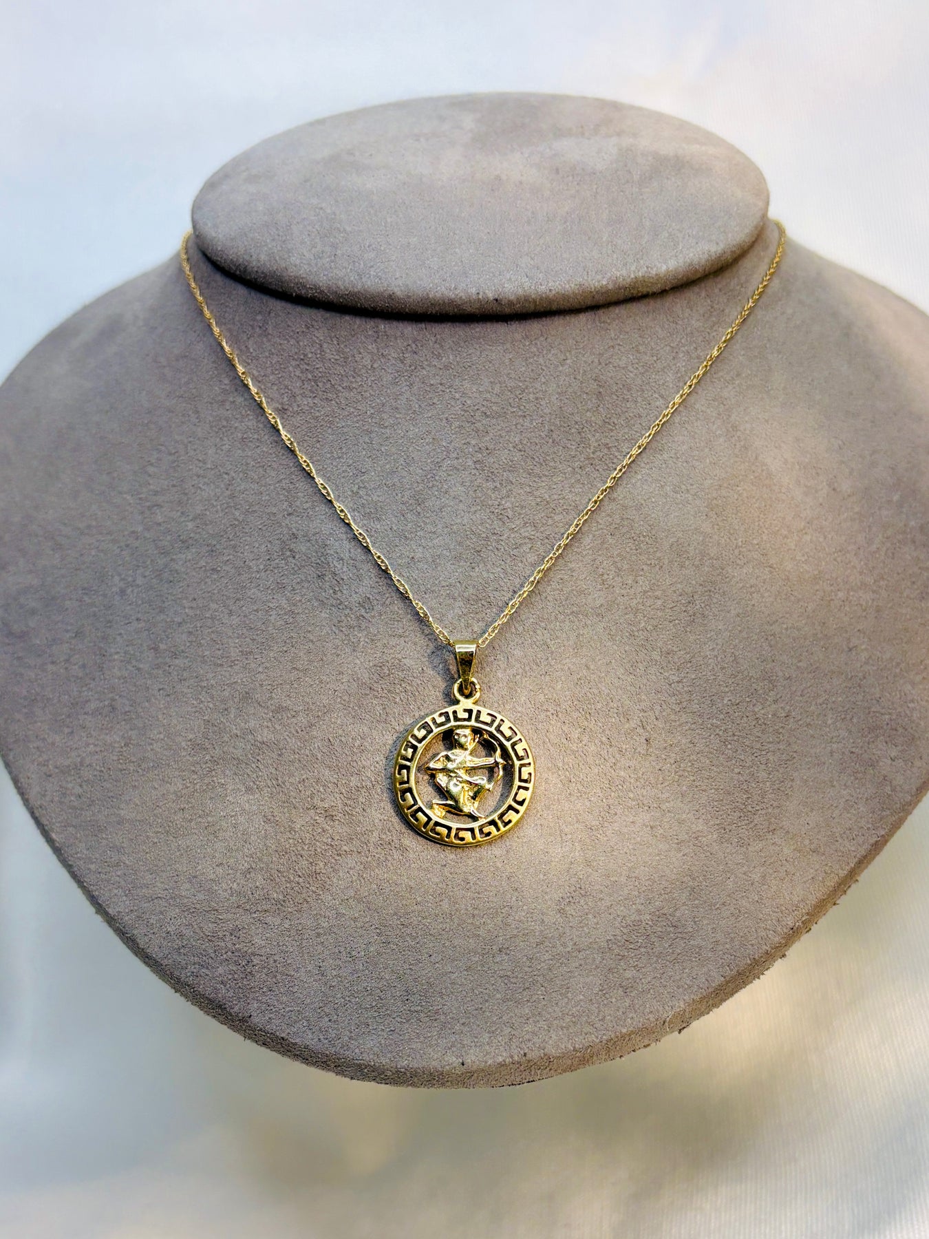 Style: For the Sag in your life! A vintage, lightweight pendant adorns a new, dainty rope chain that sparkles in the light just like their wit and sense of adventure. Measures approx 18.5mm in diameter. Rope chain is 18" long, spring ring closure, 1mm chain thickness.