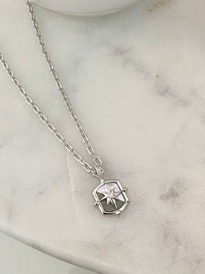 Colorblock Mother of Pearl Star Necklace {Silver}