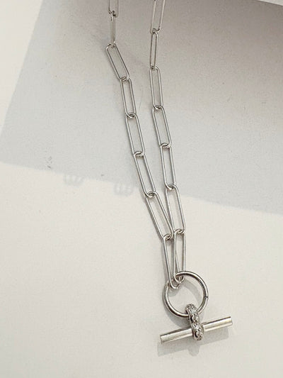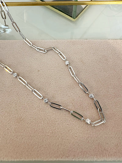 Bezel Station Paper Clip Chain Necklace {Silver}