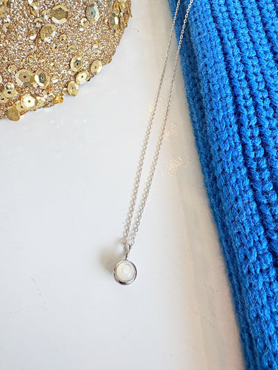 Mother of Pearl Bezel Pendant Necklace {Silver}