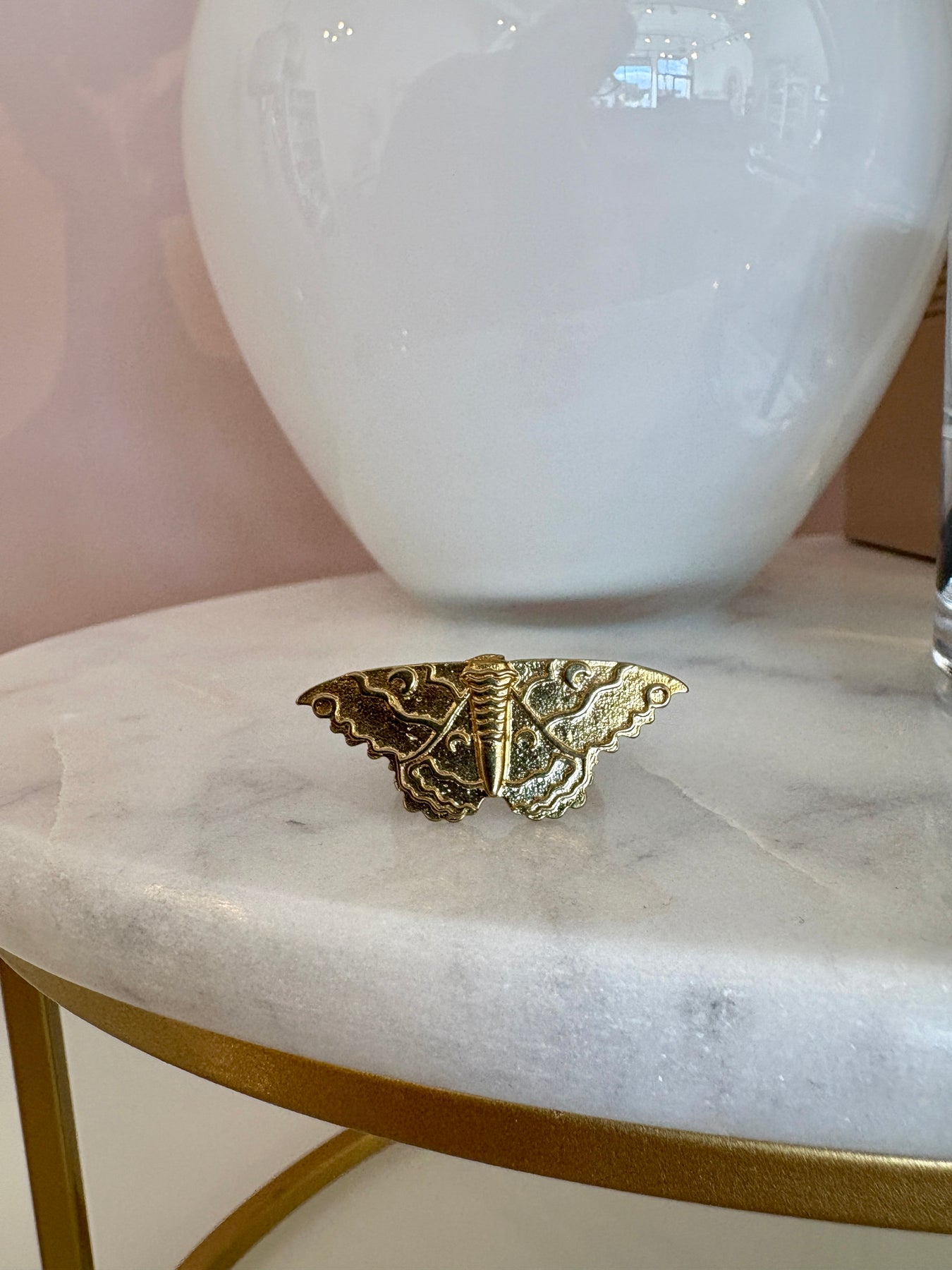 Style: Softly detailed and beautifully symbolic, this moth-inspired scarf ring represents transformation and quiet strength. Finished in a warm brass tone, it's a lovely way to secure your scarf while adding a nature-inspired, vintage feel.