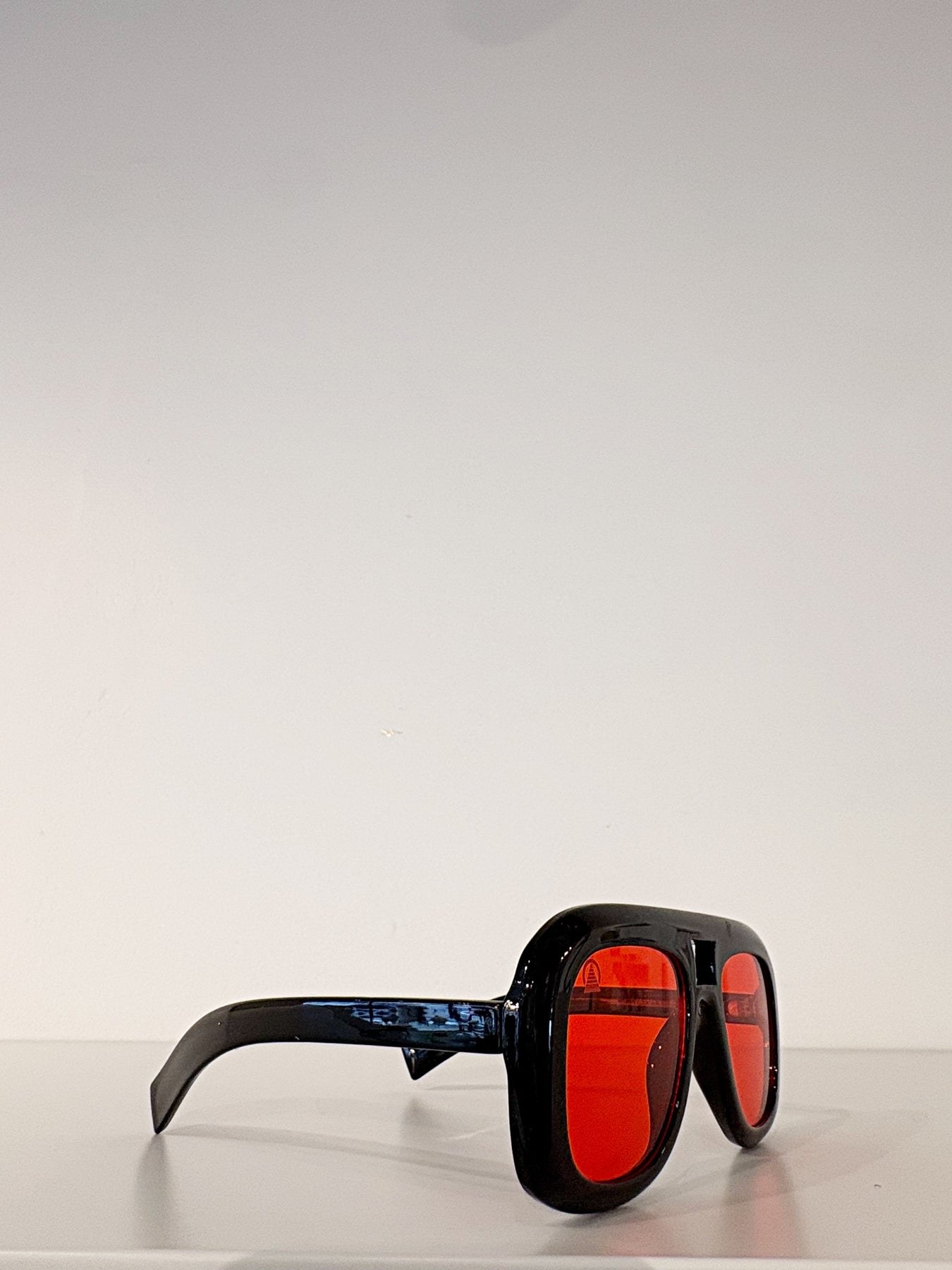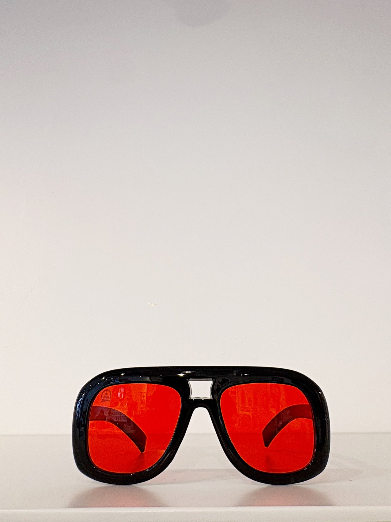 Sebastian Cho Puffed Aviator Sunglasses {Black/Tomato}