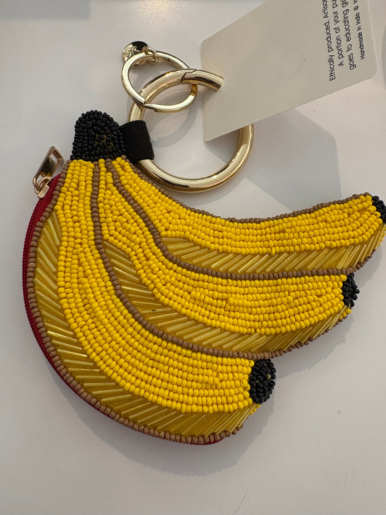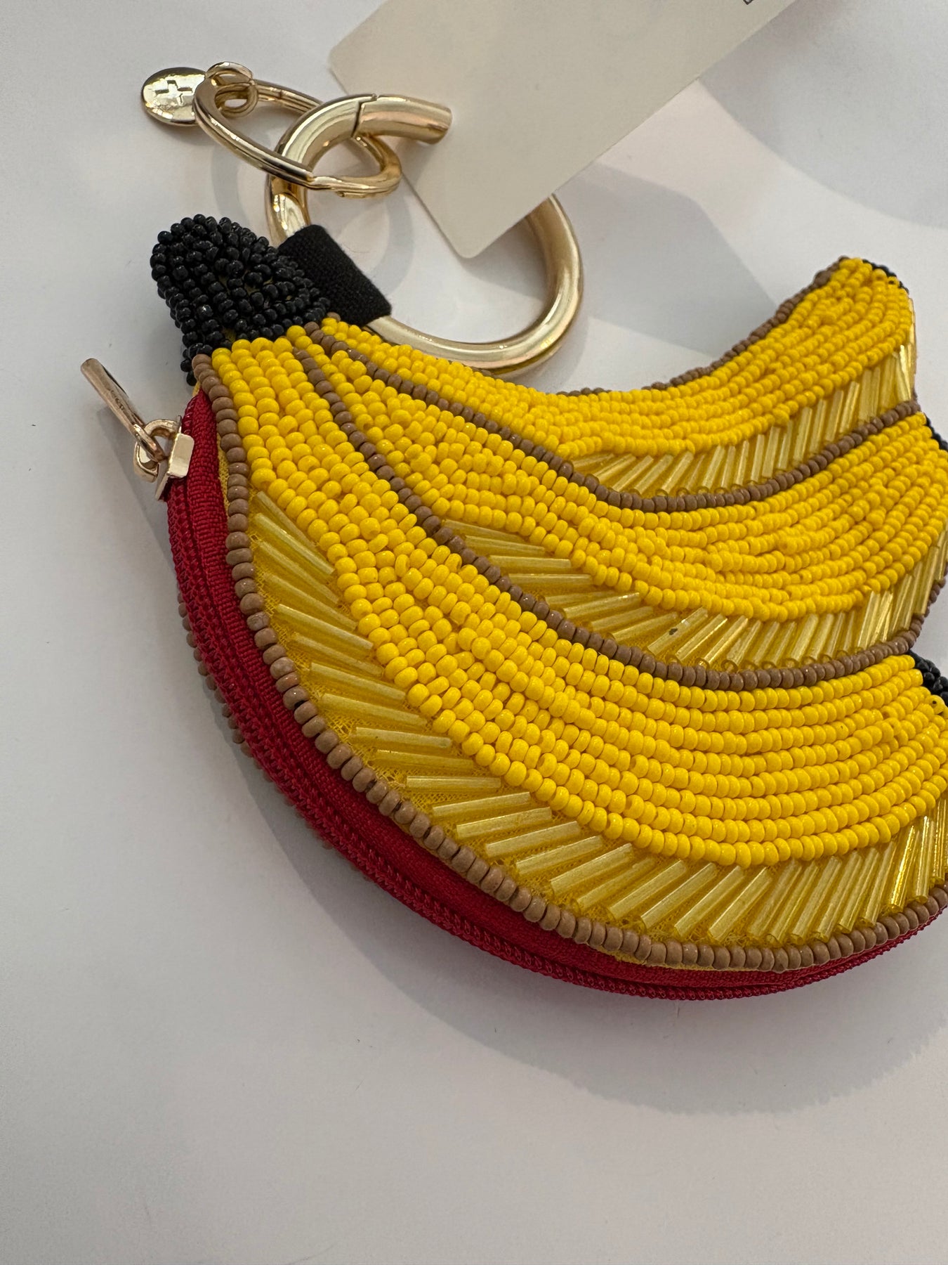 Style: The cutest way to accessorize your bag, it really is BANANAS! Clip it to your keys or attach it to your bag. Zipper on the side and pouch measures approx. 5x4.5".
