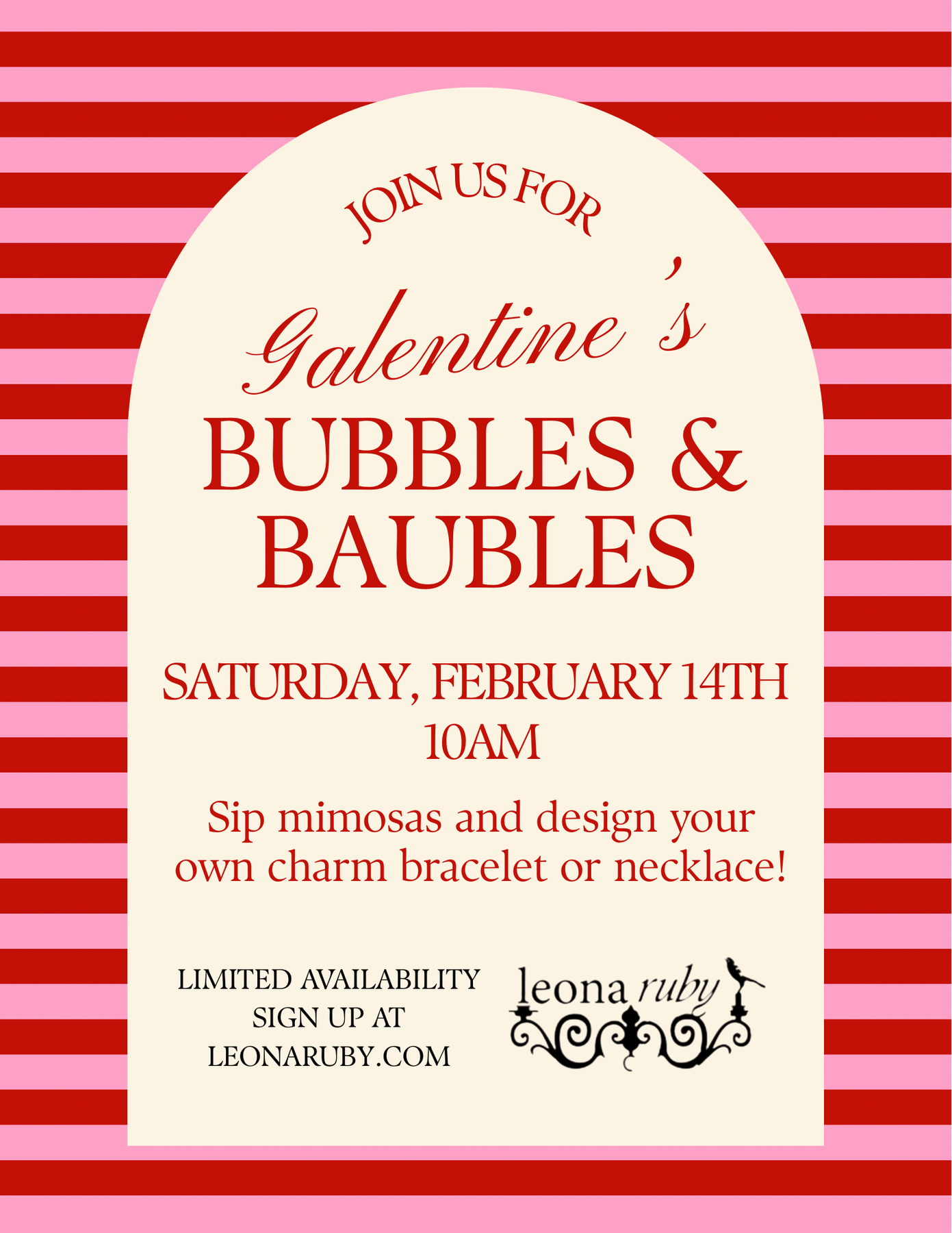 Bring your friends for a fun morning of sipping mimosas and designing your own charm bracelet or necklace.